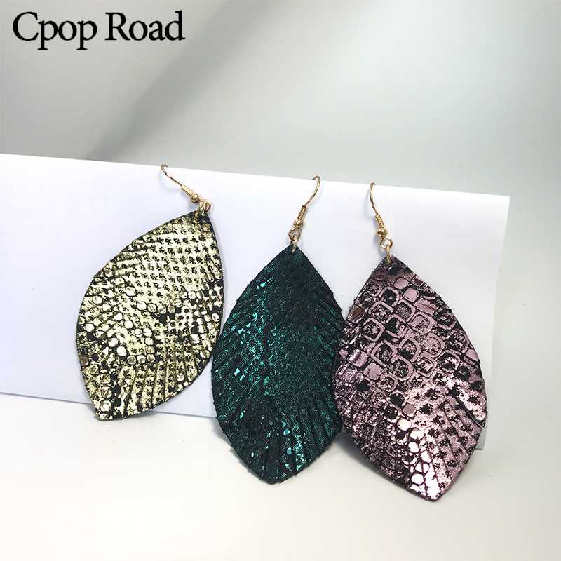 Cpop New Vintage Glitter Genuine Leather Earrings Leaf Statement Dangle Earring Fashion Jewelry Women Accessories Gift Wholesale