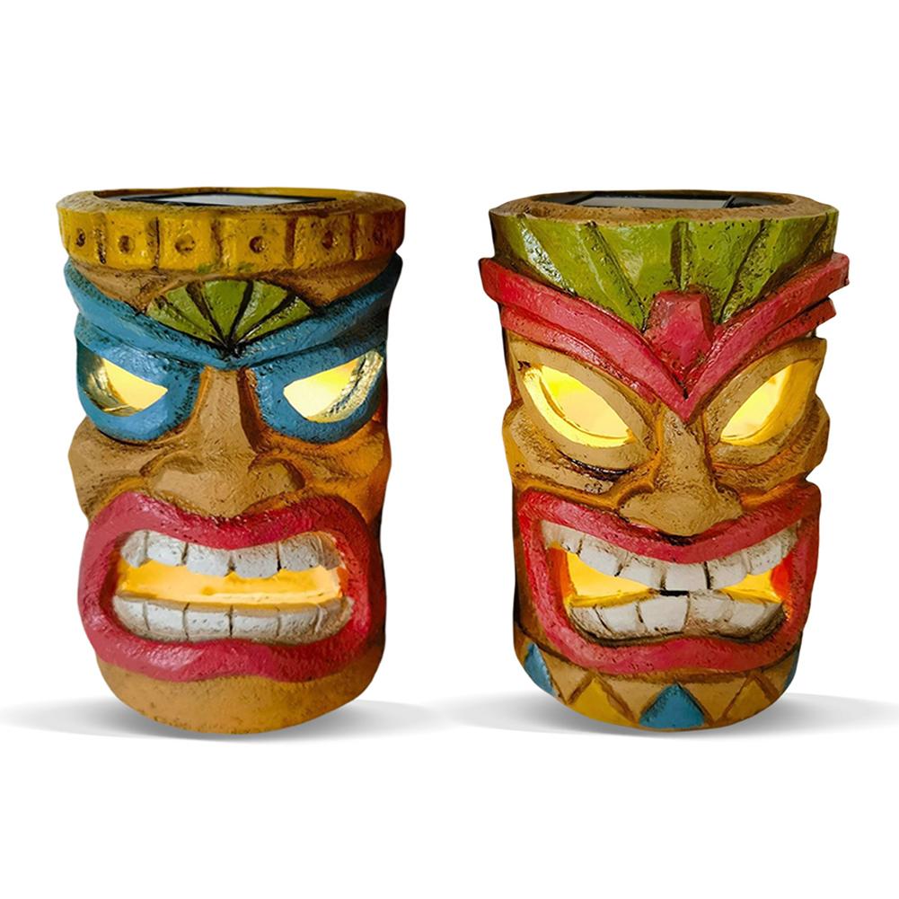 Садовое украшение в виде статуи Тики, украшение в виде головы Тики, садовый декор со светом, статуэтка Тики на солнечной батарее, летний декор для патио, бассейна и двора B
