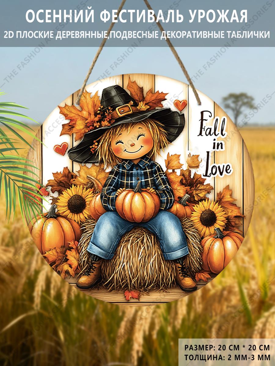 Садовые украшения, украшения для осеннего фестиваля урожая, деревянные подвесные декоративные таблички, узор с маленькой девочкой и тыквой, 2D плоские изделия 2D,Style1,1pc