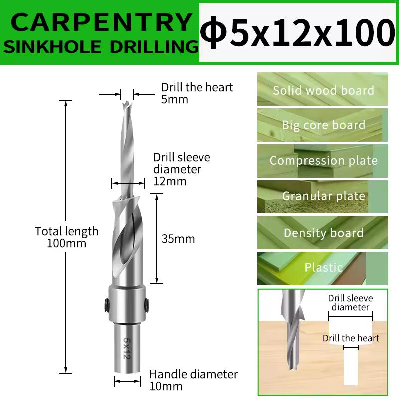 Салатная семенная мать с плоским дном и потайной головкой, шаг за шагом, шаблон с двумя отверстиями для открывания 5X12X100