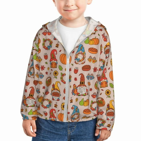 Gaeub Fall Thanksgiving Print Athletic Sun Protection Hoodie for Kids Long Sleeve Outdoor UV Shirt Running Fishing Top for Boys Girls-2 Years
