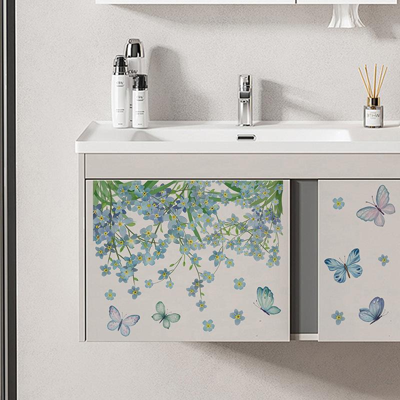 Самоклеящаяся наклейка Розовые розы Зеленые листья Бабочка Зеркало для ванной Комнатный шкаф Настенный декор Водонепроницаемая Съемная 30x30CM