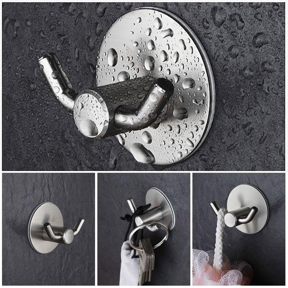 Самоклеящиеся двойные зубцы для ванной комнаты, крючок для душа, настенная вешалка, крючок для халата, вешалка для полотенец