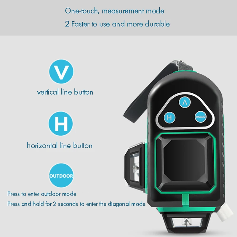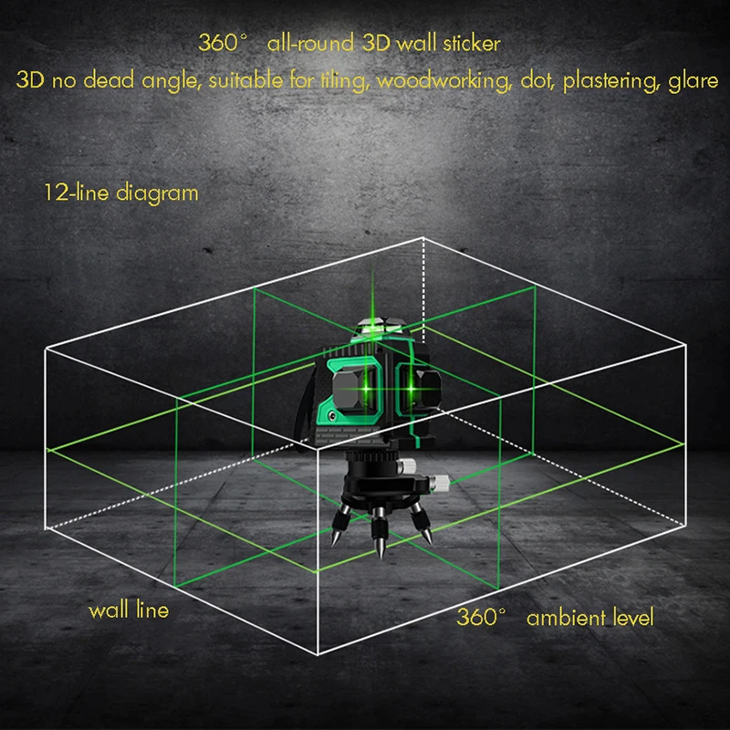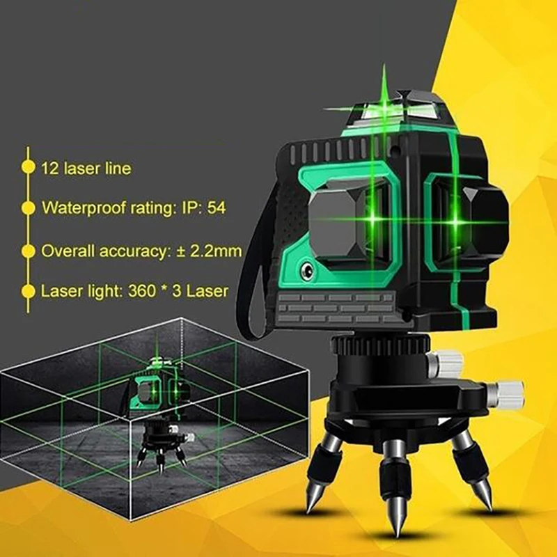 Самонивелирующийся лазерный уровень, 12 линий, красный/зеленый луч, вращение на 360 градусов, вертикальная и горизонтальная линии, лазерный ур...