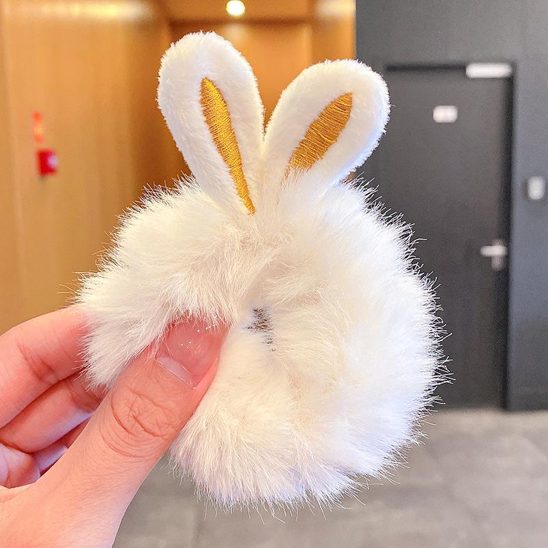 Самые дешевые эластичные резинки для волос с кроличьими ушками для девочек и женщин, пушистые меховые кольца для волос из искусственного кроличьего меха, плюшевые скранчи, аксессуары для волос