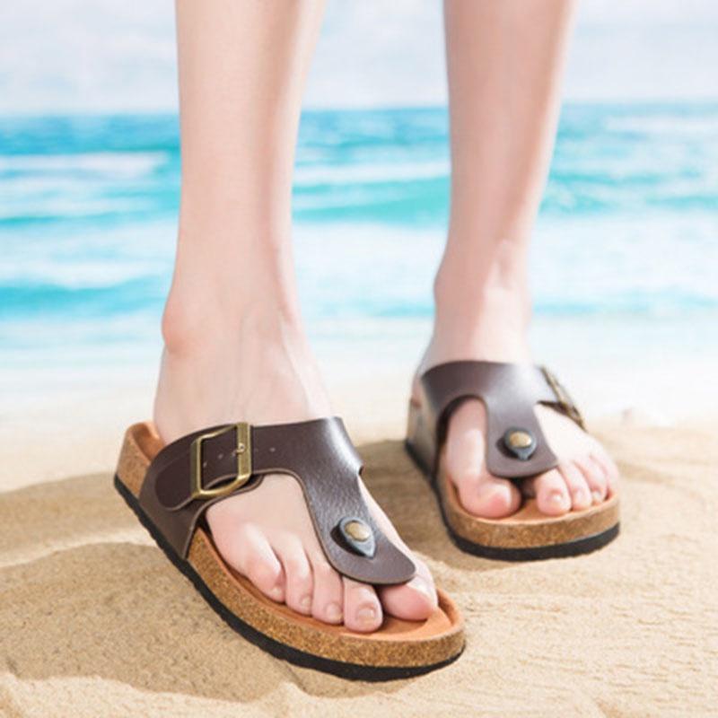 Сандалии Женские Шлепанцы Вьетнамки Плоские С Т-образным ремешком Летние Тапочки Пляжные EU39 коричневый