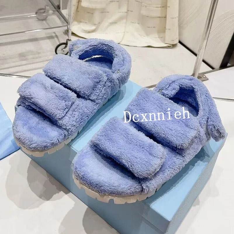 Сандалии Женские однотонные с открытым носком, Короткие шерстяные босоножки на толстой подошве, уличная теплая меховая обувь, Осень-зима