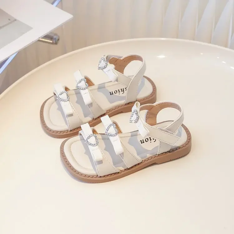 Сандалии для девочек, коллекция 2024, летняя модная детская обувь принцессы с бантом и мягкой подошвой, детская пляжная обувь с открытым носком, От 3 до 8 лет