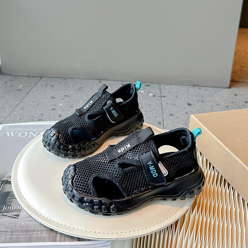 Сандалии для девочек, летние детские спортивные повседневные туфли, однотонные, модные, детские, школьные, черные, массивные, пляжные сандалии с вырезами, универсальные 26 чёрный