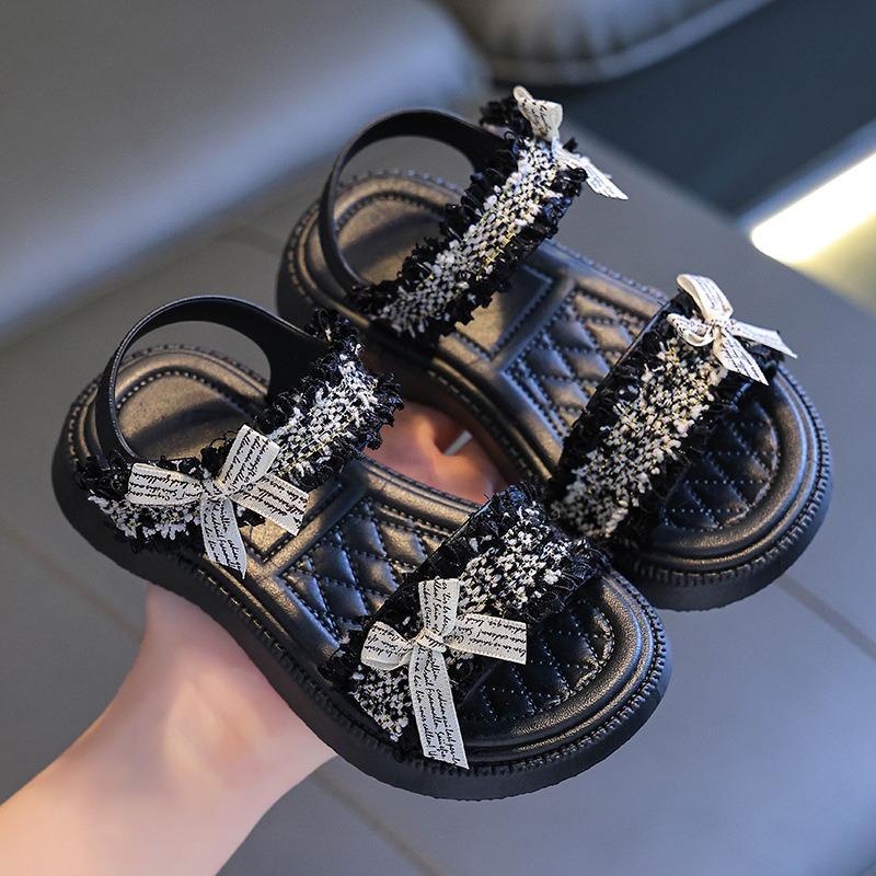 Сандалии для девочек, милая мягкая детская пляжная обувь с бантом и цветами, детские летние сандалии с бантом, модные милые сандалии принцессы высокого качества 25 чёрный