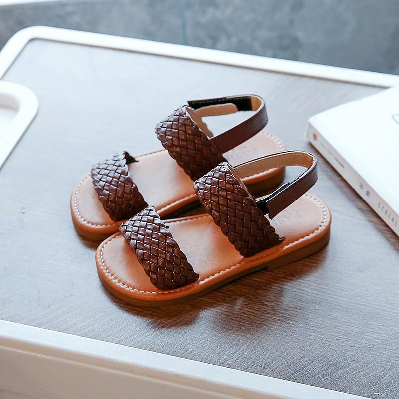 Сандалии для девочек, новые детские пляжные тканые туфли с открытым носком на мягкой подошве, модные туфли принцессы для малышей 34 коричневый