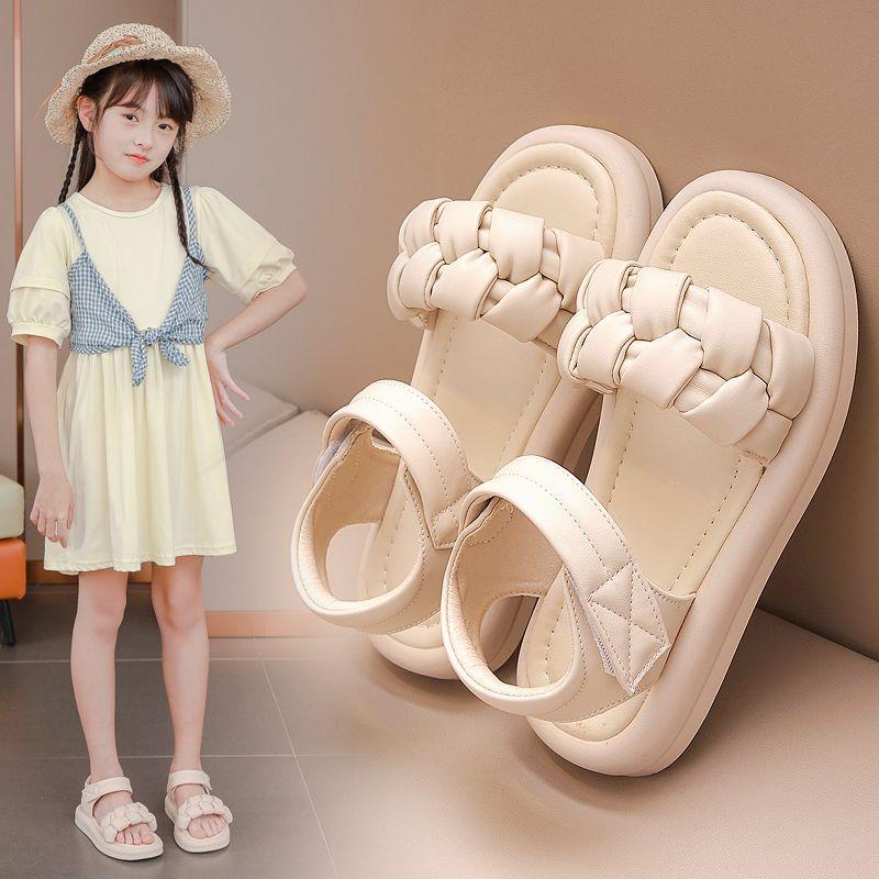 Сандалии для девочек, удобная подошва, новинка 2023 года, летняя детская пляжная обувь для детей среднего и старшего возраста, обувь принцессы для маленьких девочек