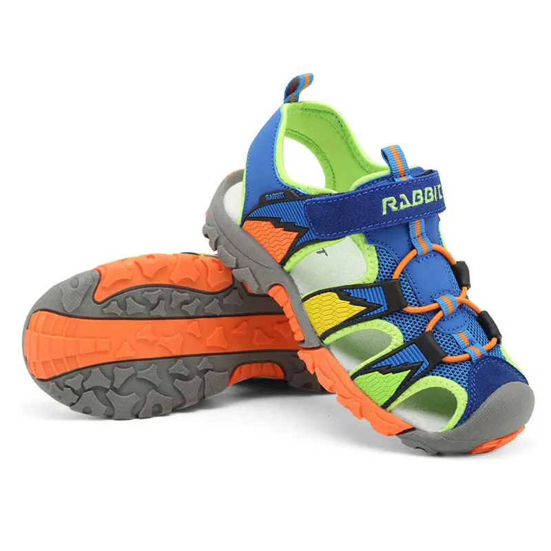Сандалии для мальчиков; Летняя детская обувь из натуральной кожи; Модная дышащая пляжная обувь на плоской подошве с вырезами для мальчиков ...
