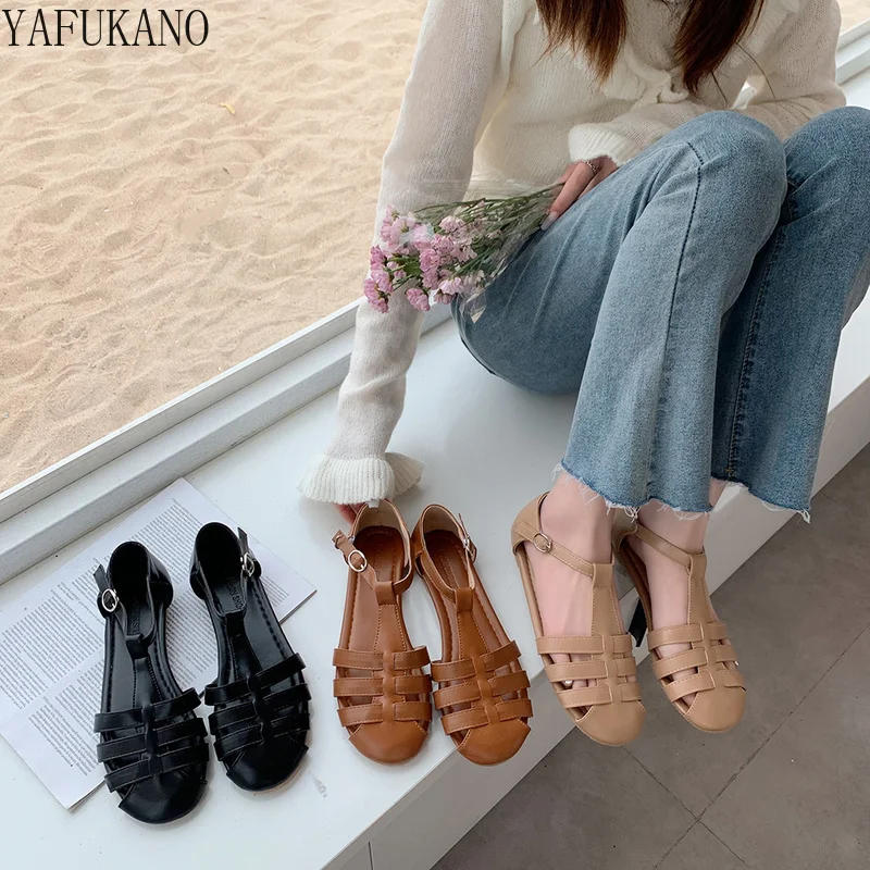 Сандалии женские во французском стиле, нишевые модные туфли в римском стиле, с переплетением, плоская подошва, сказочный стиль, ретро, лето ...