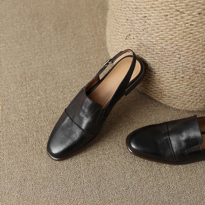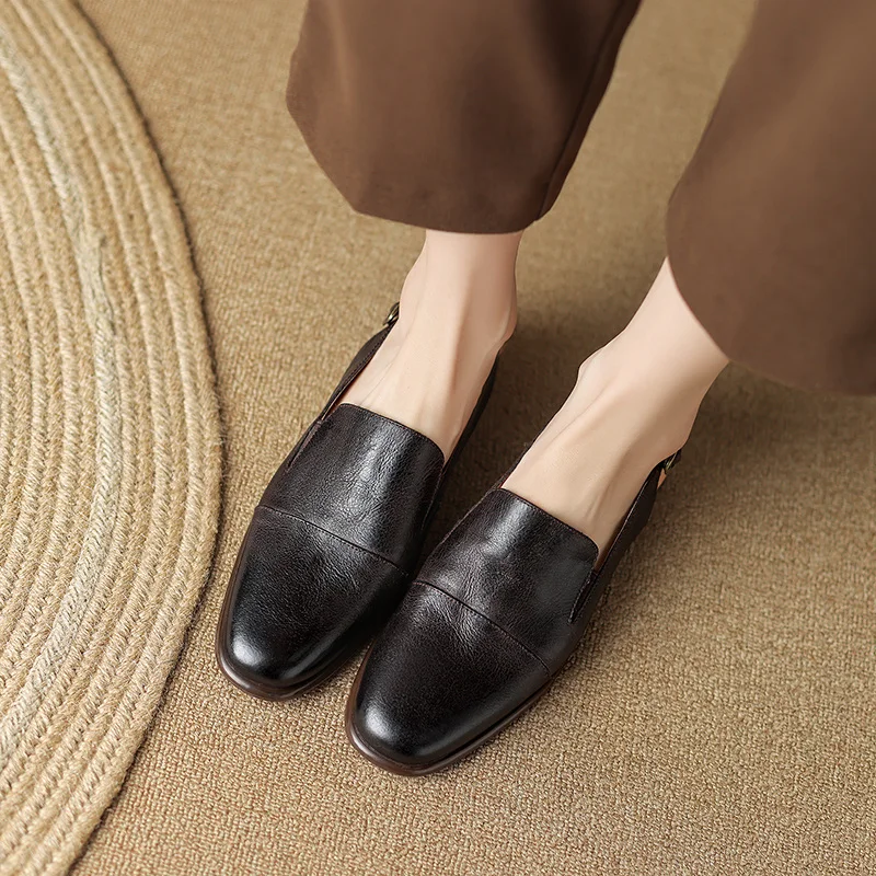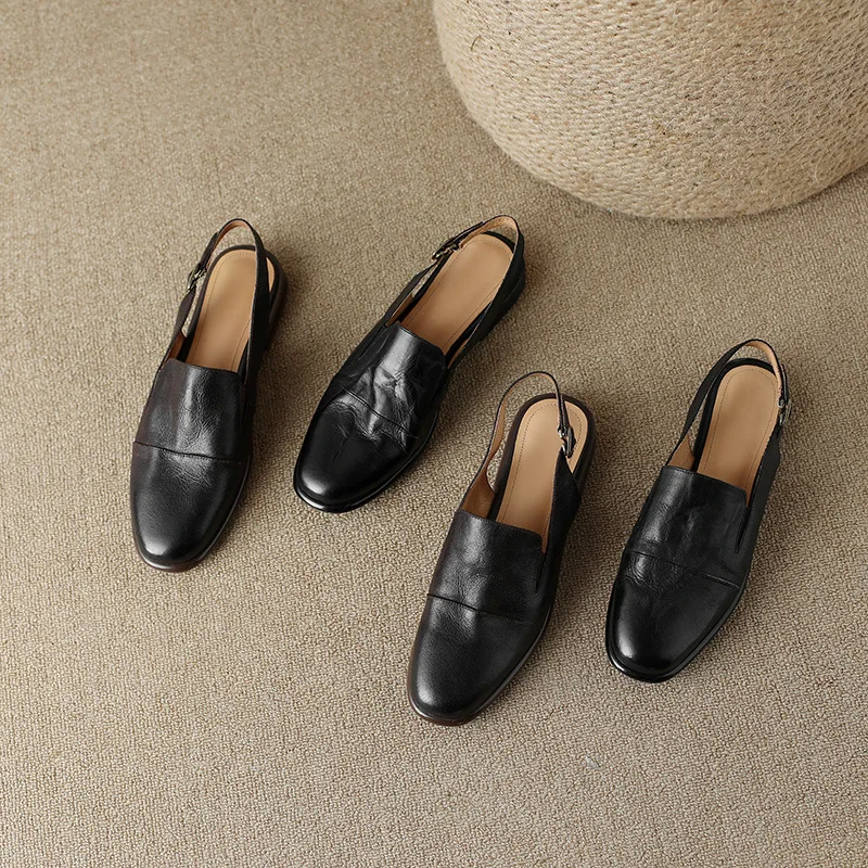 Сандалии женские из натуральной бычьей кожи, однотонные туфли с закрытым носком, на плоской подошве, ручная работа, модная летняя обувь, черные, коричневые