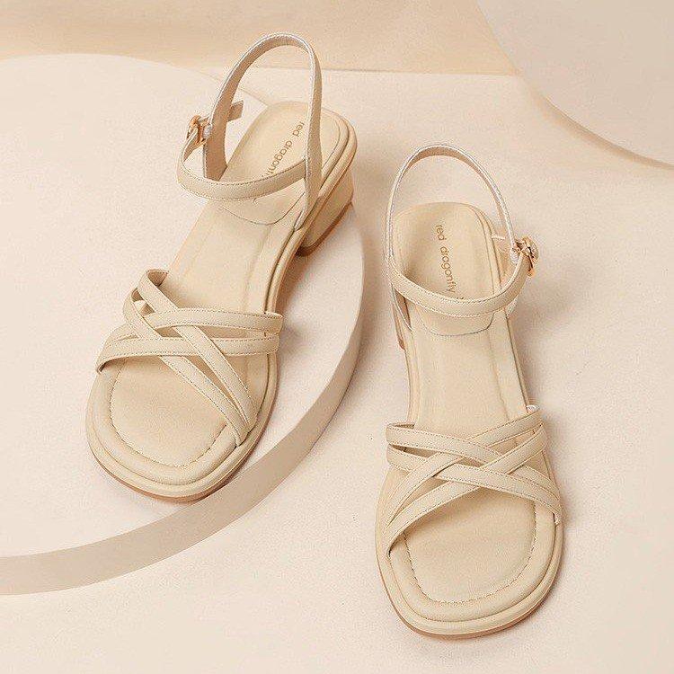 Сандалии женские модели леди 2025 новые летние женские фея стиль толстый каблук открытый носок с юбкой слово с универсальным 40 светло-желтого