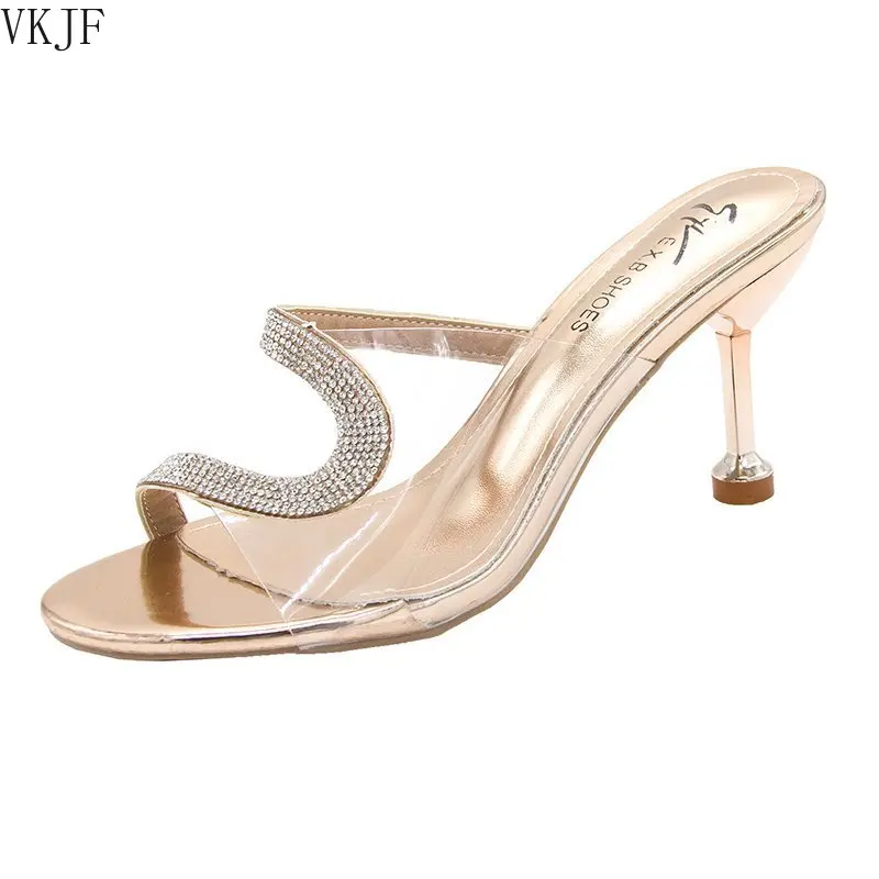 Сандалии женские прозрачные из ПВХ, высокий каблук-шпилька, пикантная обувь с открытым носком, модные туфли-лодочки с прозрачными кристалла...