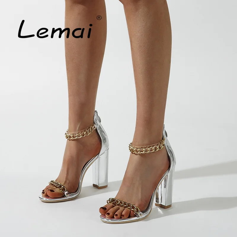 Сандалии женские прозрачные на очень высоком каблуке, пикантные модные туфли с цепочкой для ночного клуба, туфли на шпильке с круглым носко...