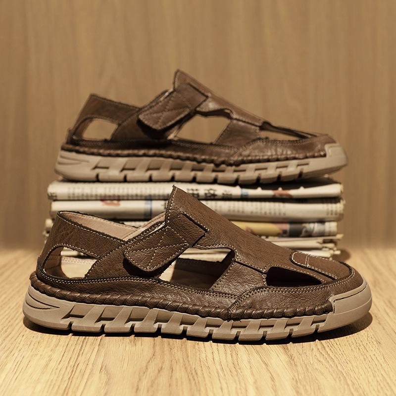 Сандалии мужские взрывные летние кожаные дышащие модные универсальные полые повседневные для вождения двойного назначения для отдыха на природе пляжная обувь 39 светло-коричневого