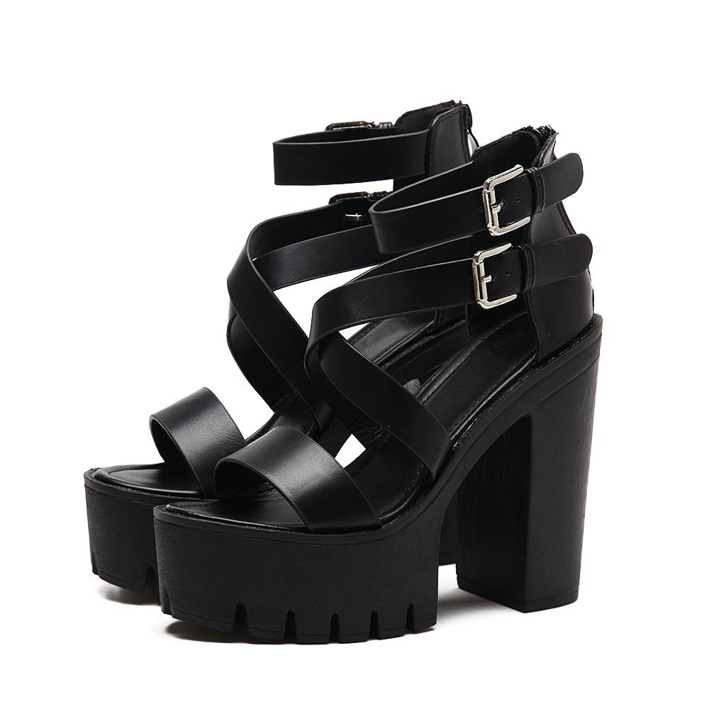 Сандалии на высоком каблуке с открытым носком, женская обувь на платформе для вечеринки, ночного клуба, сексуальная черная готическая обувь 40