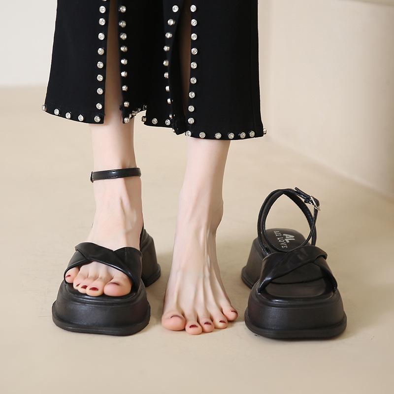 Сандалии на платформе, женские летние новые модные пляжные туфли с открытым носком 2022, женские вечерние сандалии на толстой подошве 38 чёрный