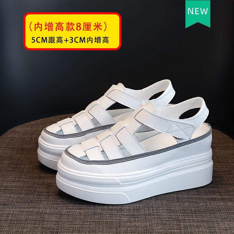 Сандалии на платформе, женские туфли, увеличивающие рост, тапочки, женские летние, наружные, новые, из коровьей кожи, дышащие сандалии с сумкой на щиколотку 39