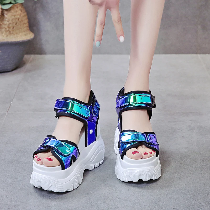 Сандалии на платформе с рифленой подошвой, модель 2021 года, объемная симфония, очень высокий каблук, для студентов, летний цвет, пляжная обувь...