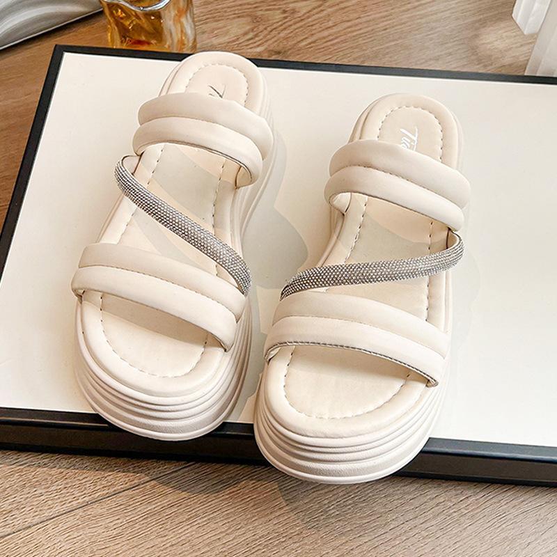 Сандалии на толстой подошве, увеличивающие рост, для девочки, весна-лето 2025, новая модная модель, модные шлепанцы со стразами в сказочном стиле 40 бежевый
