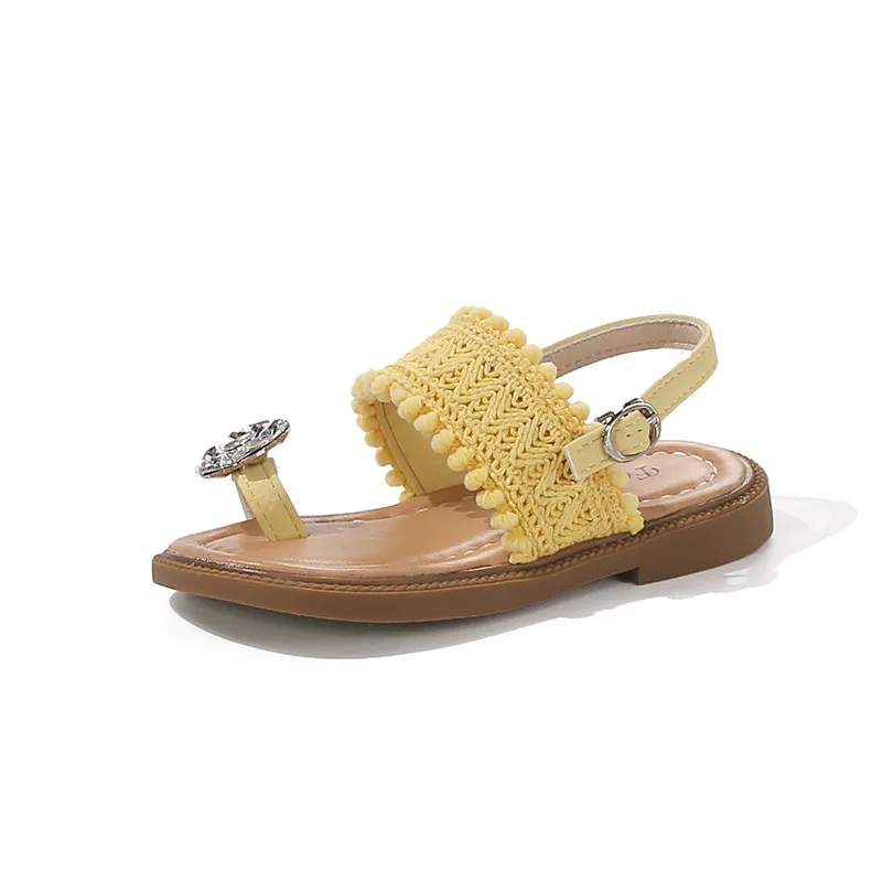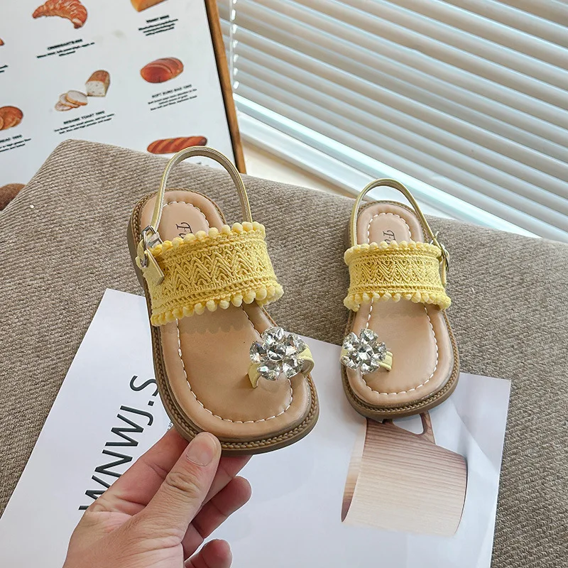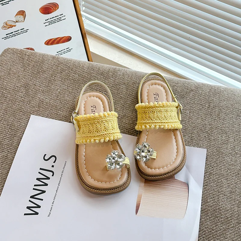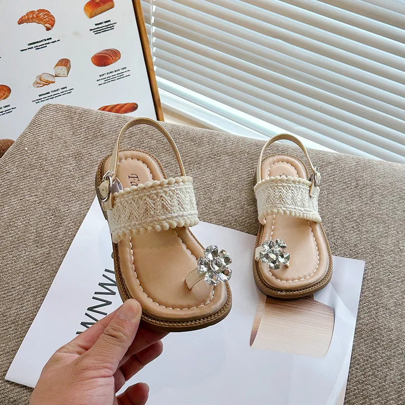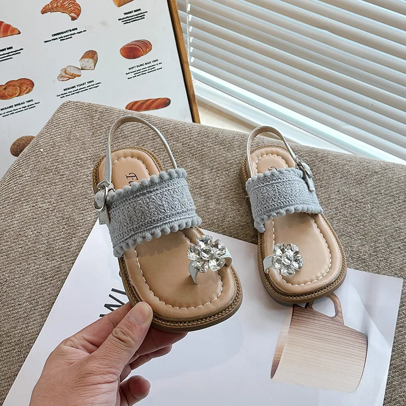 Сандалии принцессы для девочек, лето 2021, модная детская пляжная обувь с кристаллами и цветами, модная детская повседневная обувь с открытым носком, милая плетеная обувь