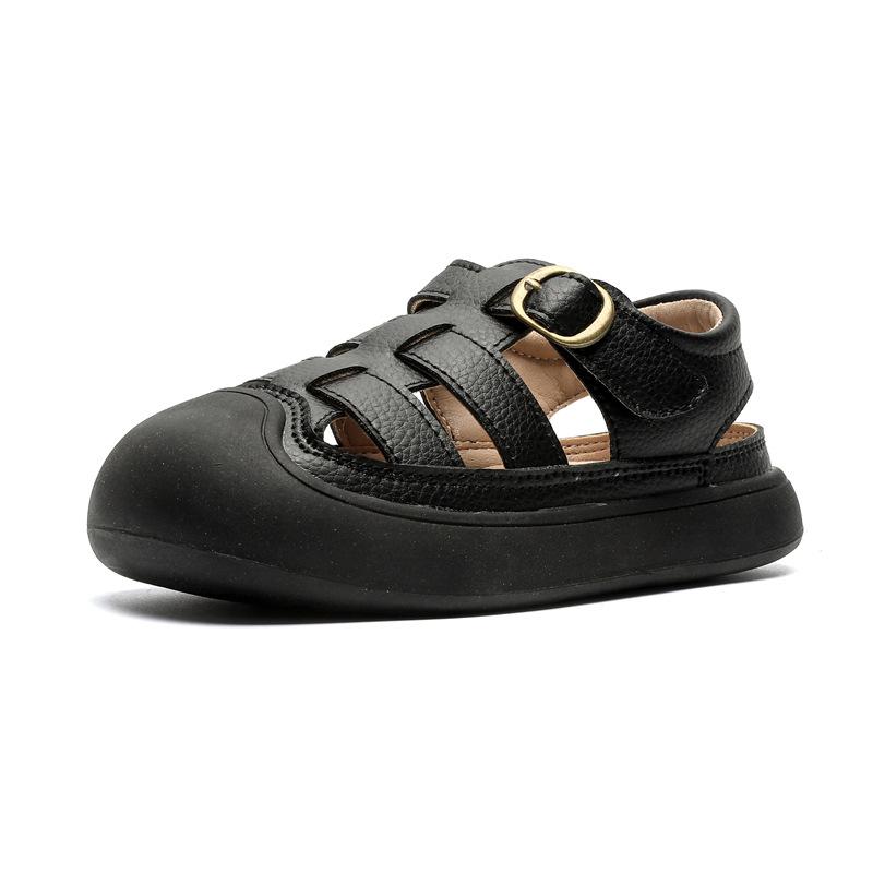 Сандалии с закрытым носком для мальчиков, летняя детская пляжная обувь, мягкая подошва, дышащие спортивные сандалии для девочек 33 чёрный
