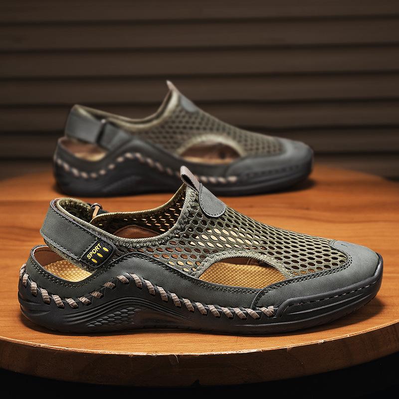 Сандалии Baotou Мужская верхняя одежда Сетчатая мягкая подошва Пляжная обувь Альпинизм Забродная обувь для вождения Спортивная обувь Hole 46 зелёный