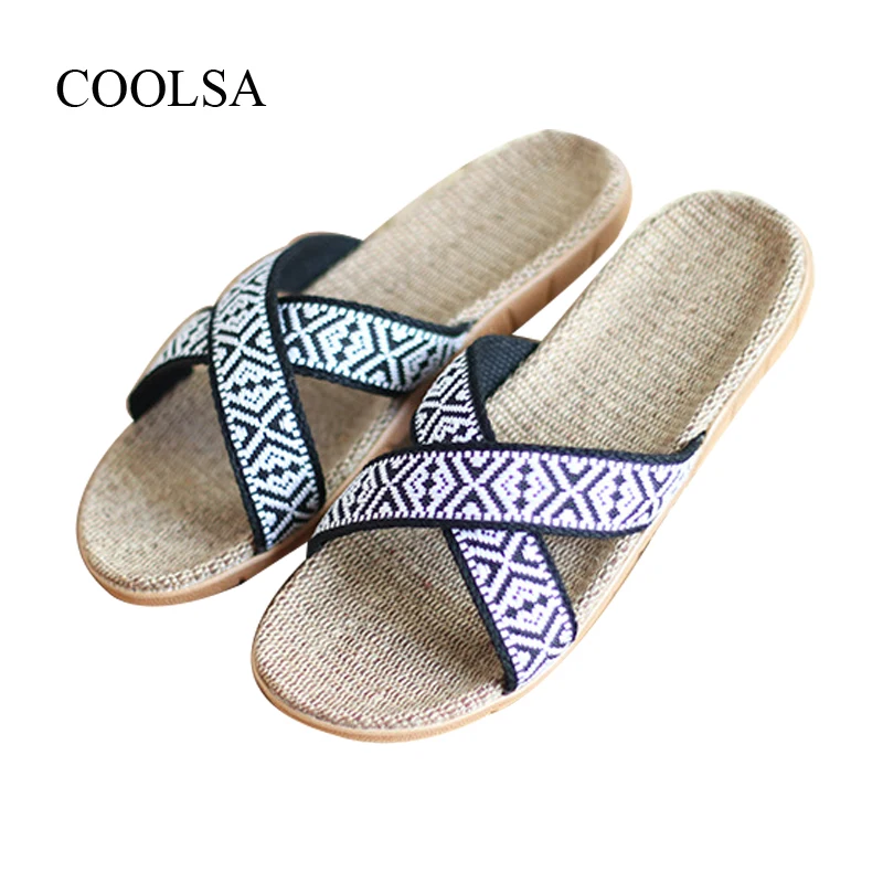 Сандалии COOLSA мужские с перекрестными ремнями, дышащие Нескользящие Шлепанцы из натурального льна, мягкие прочные, пляжные тапочки для дома,...