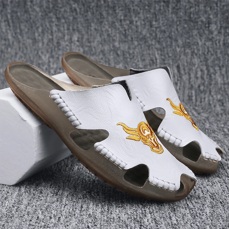 Сандалии CYYTL мужские кожаные, легкие повседневные, Нескользящие, на платформе, пляжные шлепанцы, для улицы, прогулок, плоская подошва, большие размеры, летняя модель