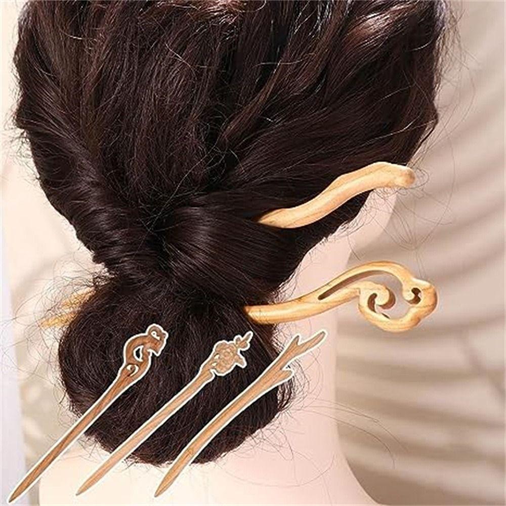 Сандалия из дерева ручной работы Шпилька для волос Полая палочка для еды Шпильки для волос Ретро Вилка для волос Женщина Девушки