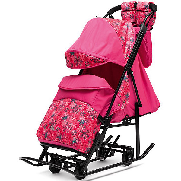 Санки-коляска ABC Academy Зимняя Сказка 3В + ВК , черная рама, розовый/снежинки