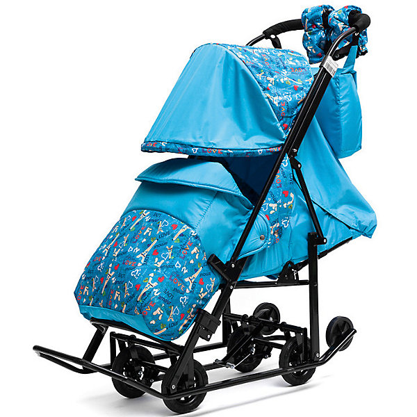 Санки-коляска ABC Academy Зимняя Сказка 3В Люкс, черная рама, аква/Париж, Голубой