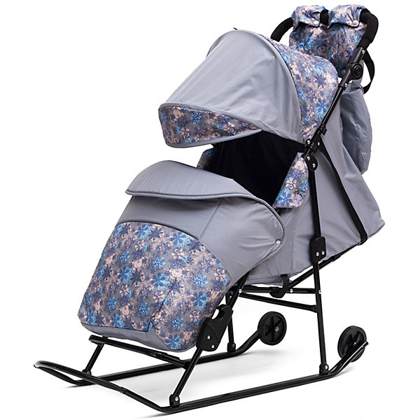 Санки-коляску Зимняя сказка 2В Авто, черная рама, ABC Academy, серый/Снежинки можно купить в нашем интернет-магазине.