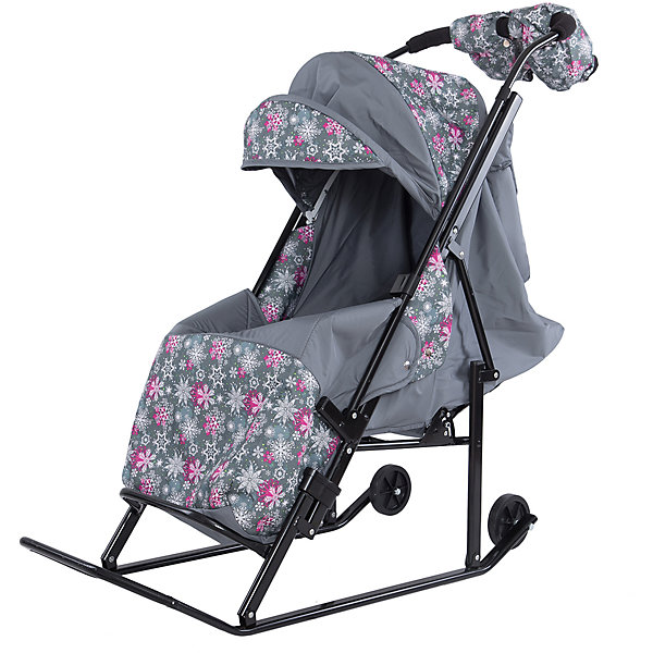 Санки-коляска ABC Academy Зимняя сказка 3В, черная рама, темно-серый/Снежинки, Санки-коляска ABC Academy Зимняя сказка 3В, черная рама, /Снежинки