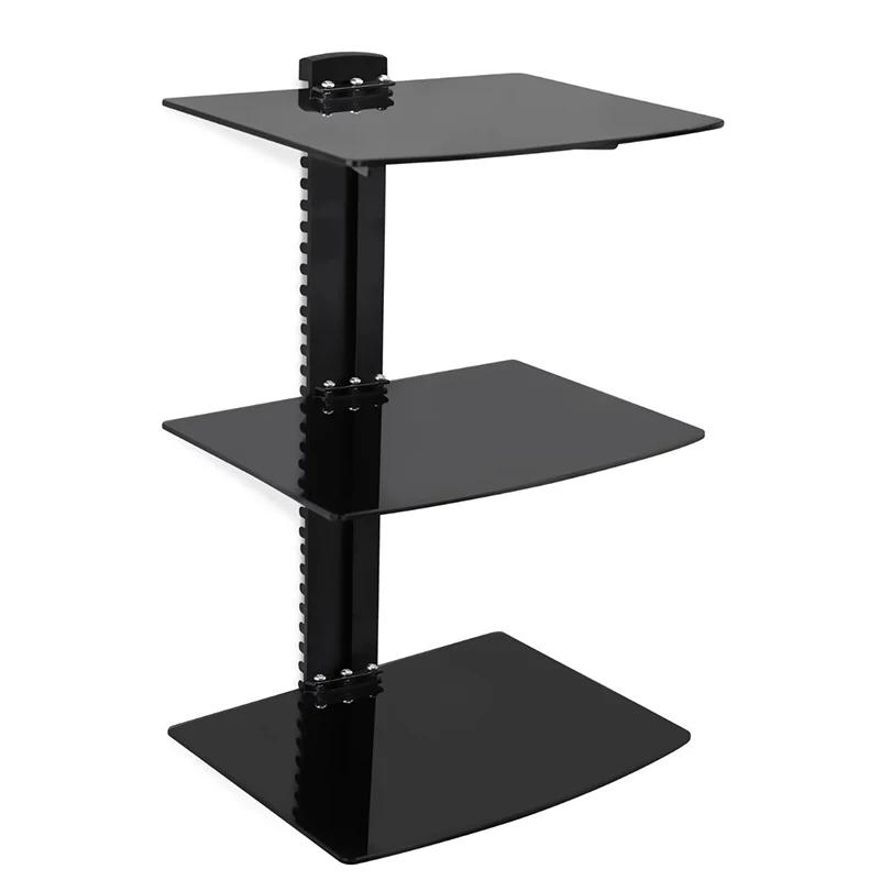 Регулируемая плавающая настенная установка | Три черные полки из закаленного стекла