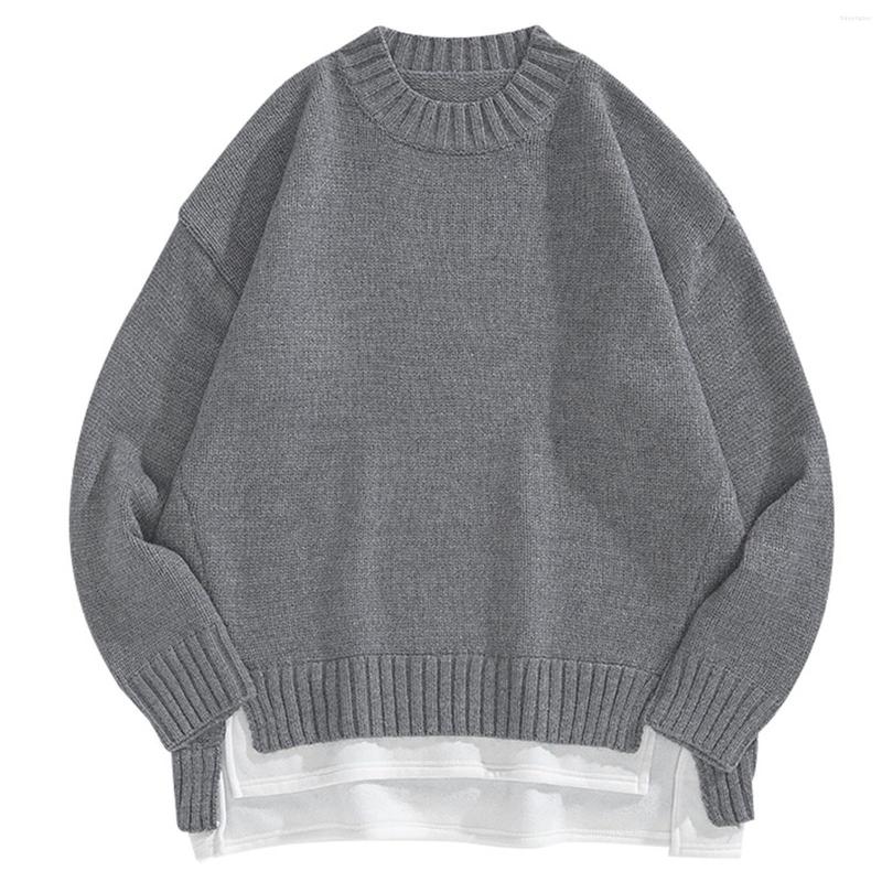 Men's Sweaters Men's Casual Solid Color Splice Sweater Long Sleeve Round Neck Blouse Warm Soft Fashion Sweatshirt, Yellow