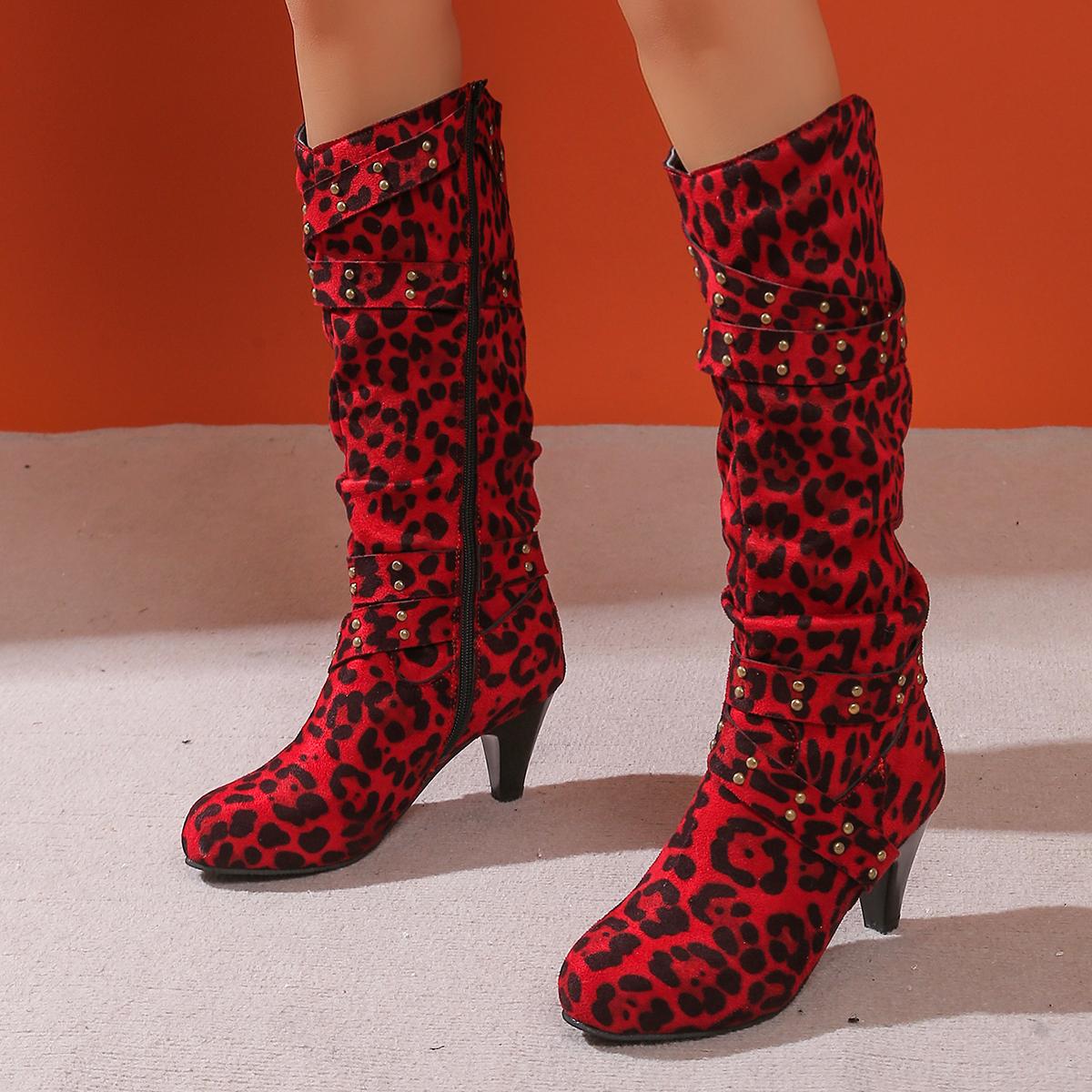 Сапоги женские осенне-зимние новые большие окружности трубы толстый низ но колено прямые трубы тонкие сзади молния высокие сапоги 38 красный
