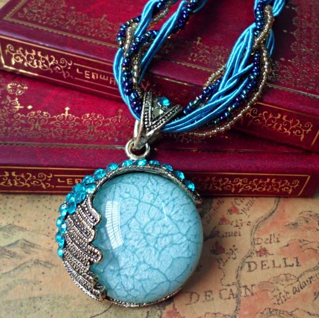 Сапфировая Лунная Бухта Ретро Богемное Ожерелье Подвеска