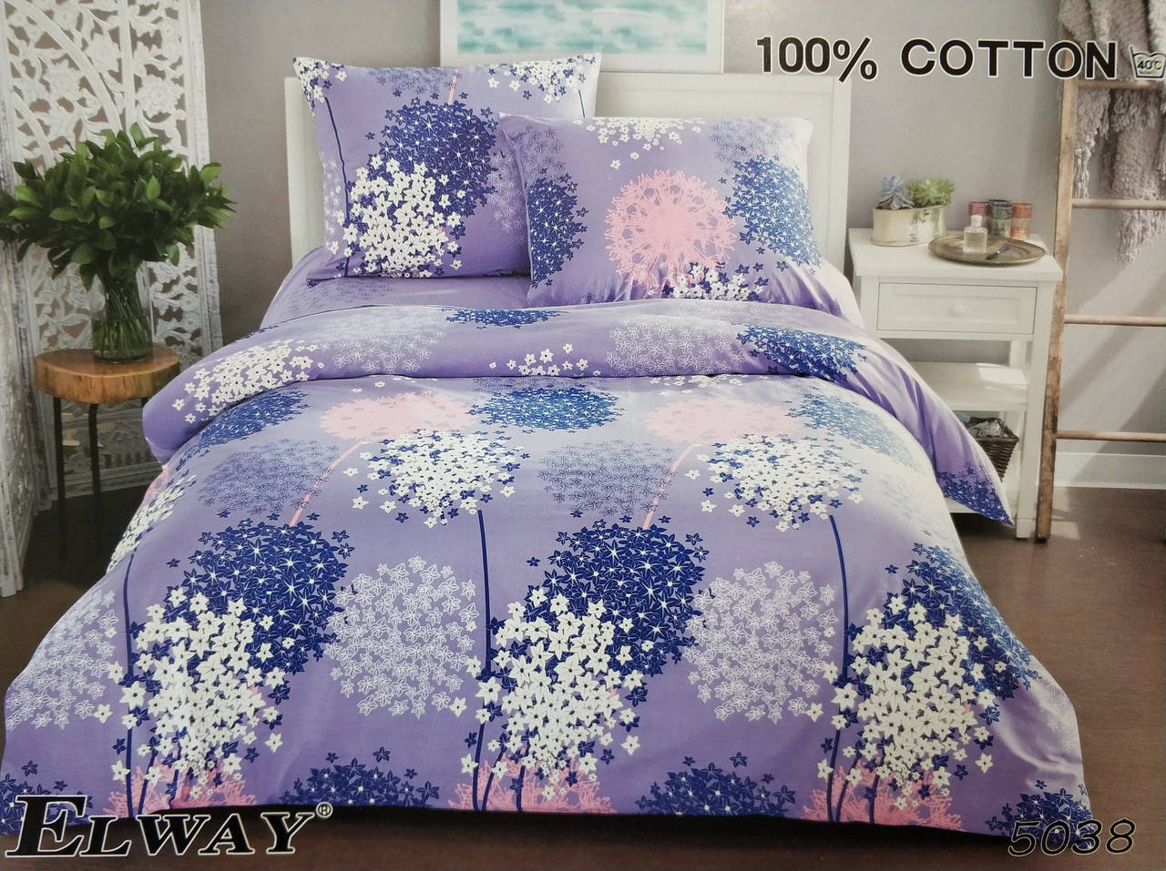 Сатиновое постельное белье евро ELWAY 5038 «Цветы сирени», Сиреневый