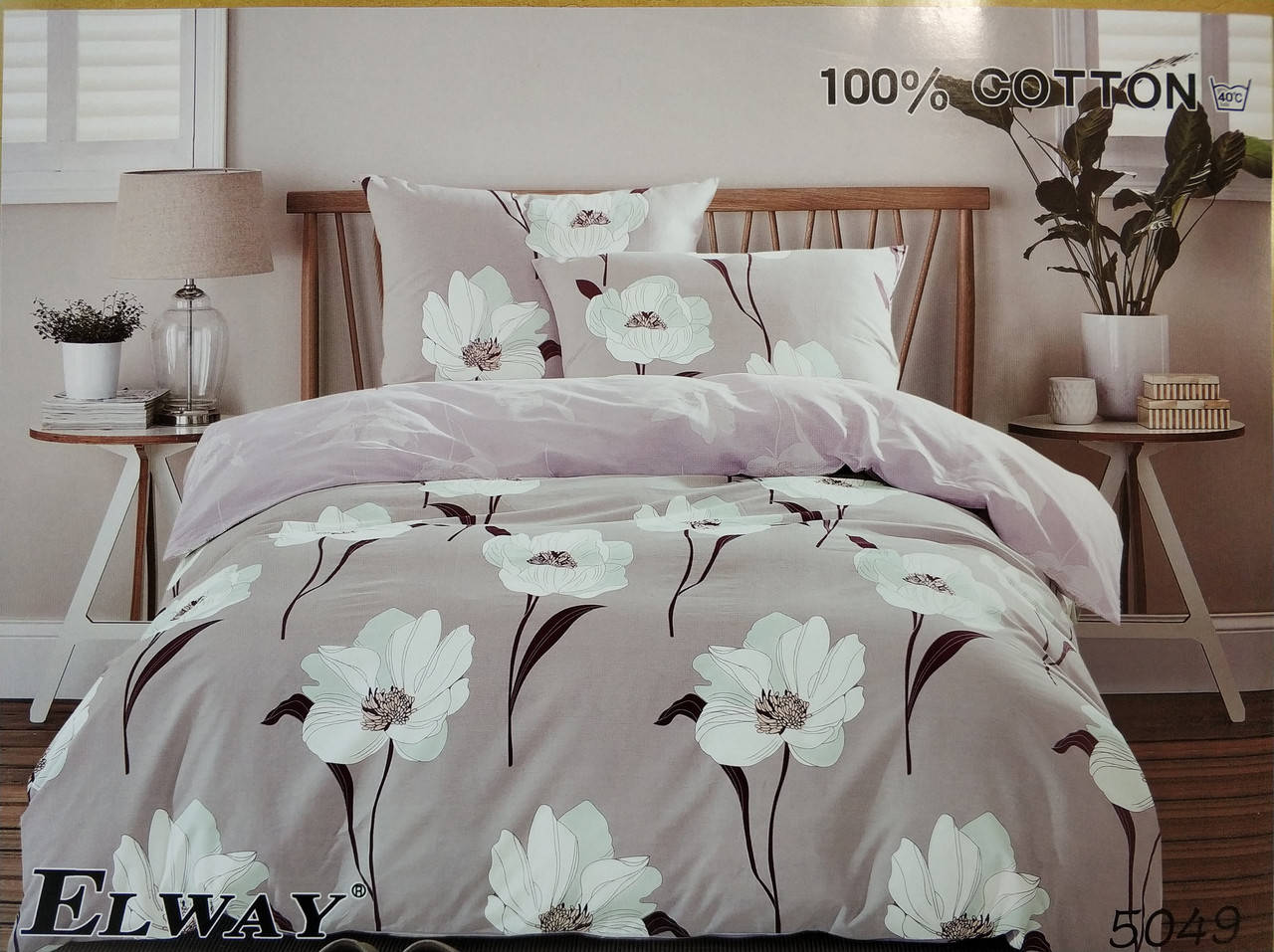 Сатиновое постельное белье евро ELWAY 5049 «Цветочный орнамент», Светло-серый