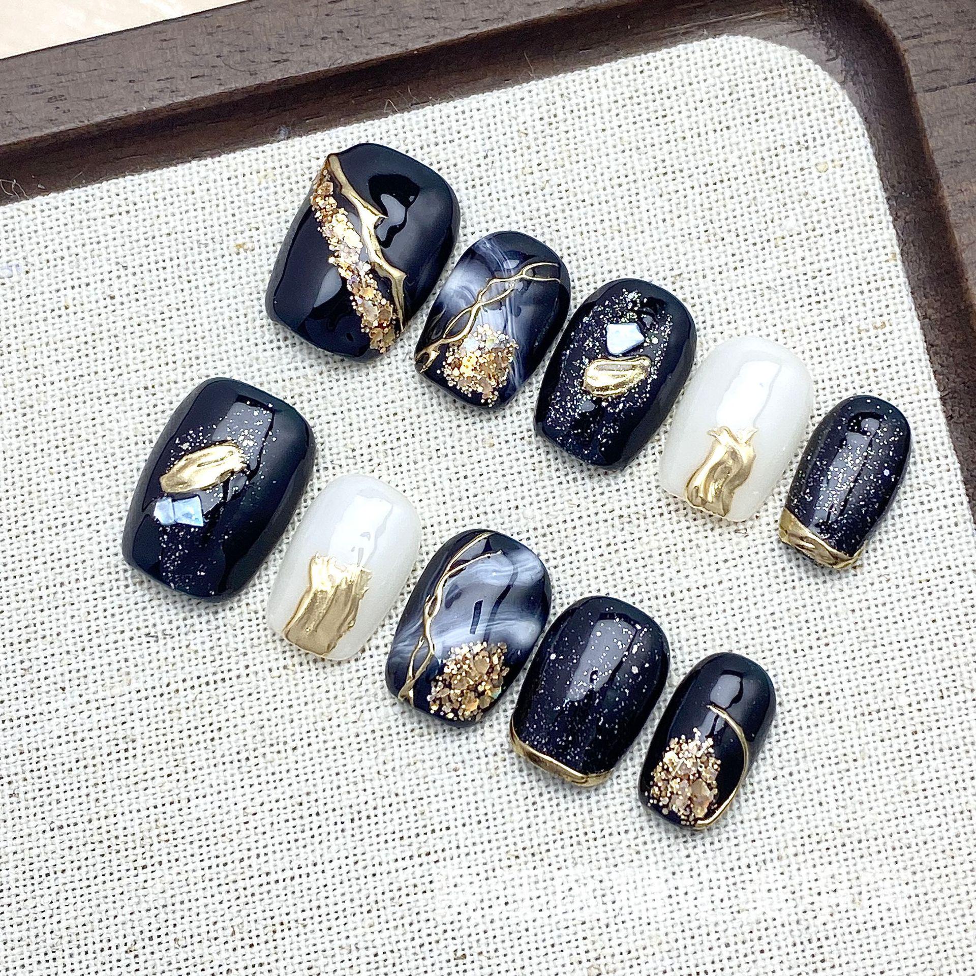 Сахарная наложница Расписанные вручную ногти омбре - Круглогодичная черная магия зеркальная пудра балет Medium