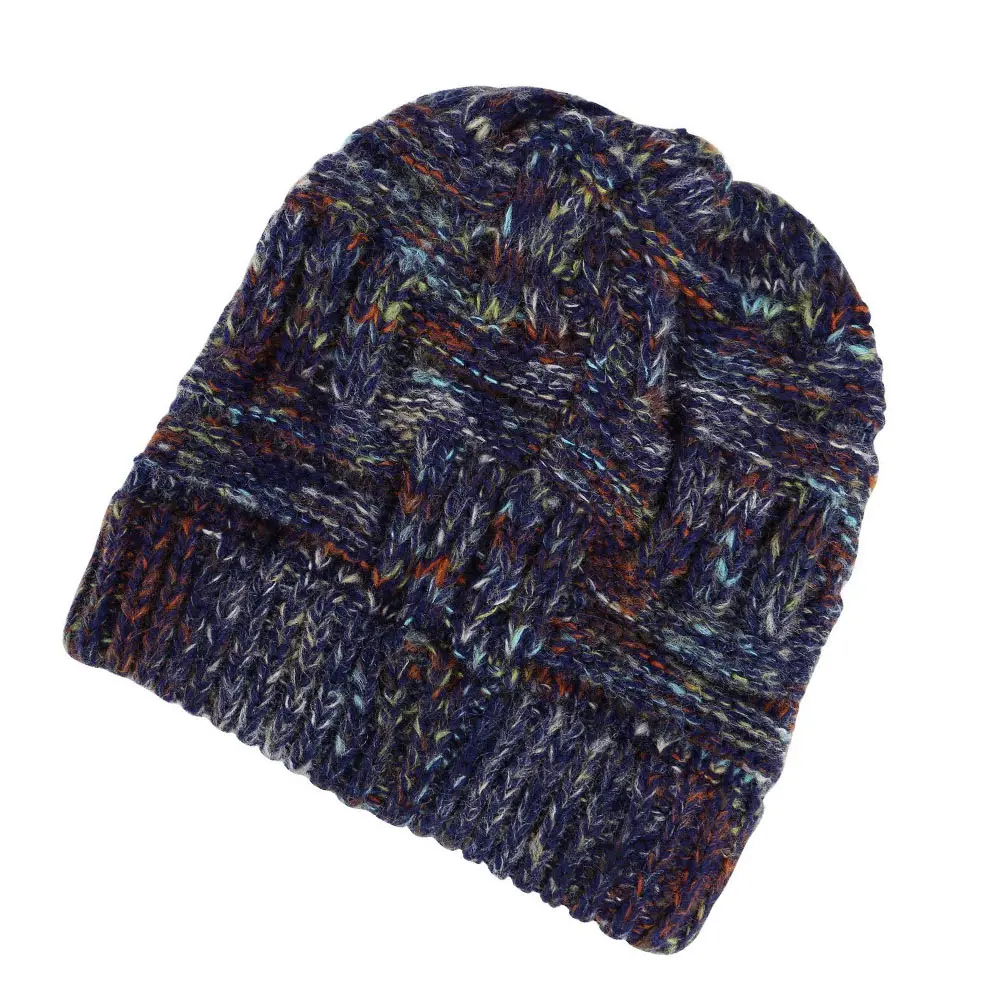Stylish Women Knitted Hat Warm Ponytail Cap for Winter Camping Running Skiing Fashion Party Navy Blue One Size Fits All Woolen