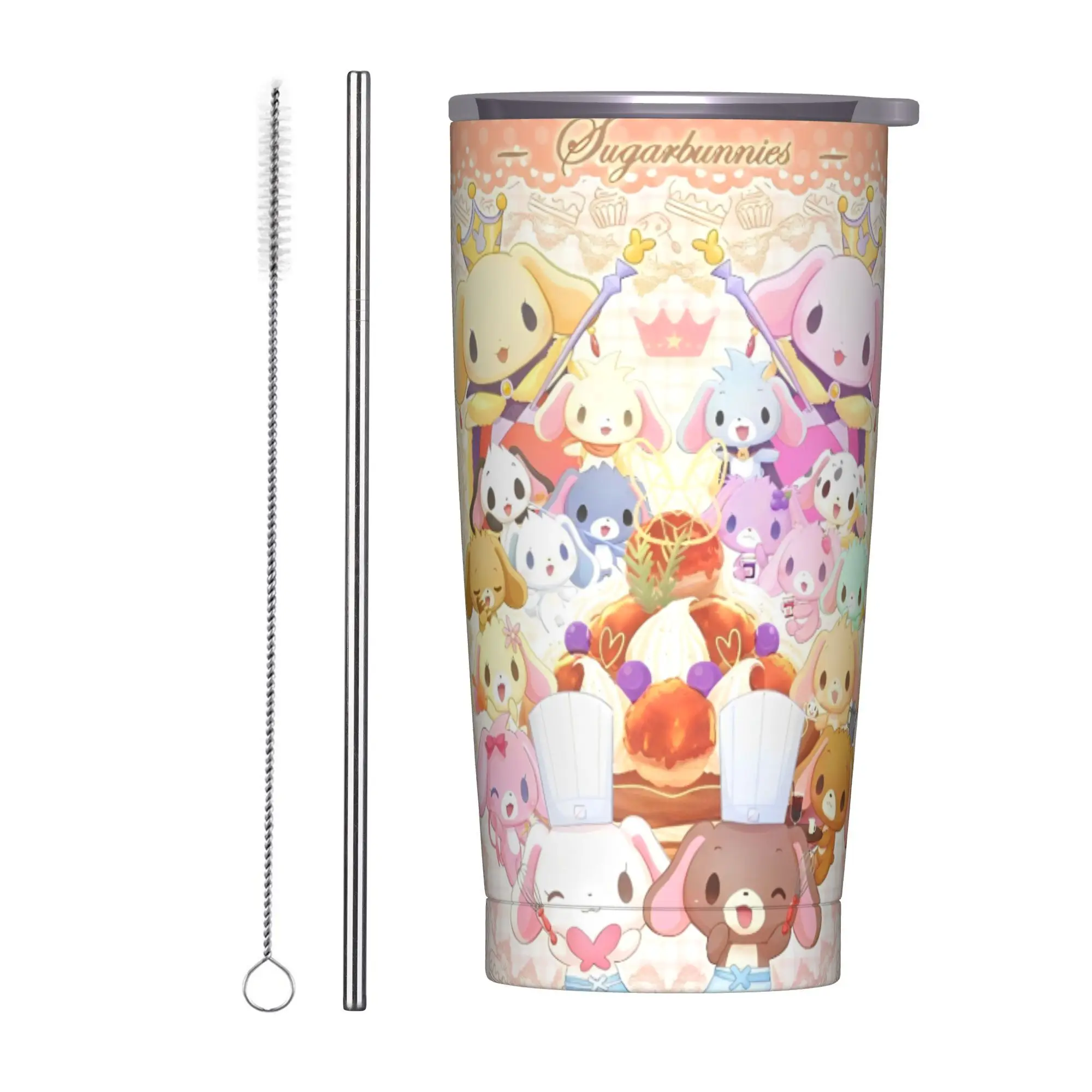 Сахарные кролики Сахарный кролик Стакан с вакуумной изоляцией Мультяшная термочашка с крышкой Соломенные дорожные уличные кружки с защитой от проливания, 20 унций