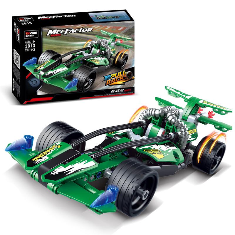 Сборка автомобиля вплотную к спине, спортивная гоночная модель, мальчик, организация, обучение, подарок, строительный блок, игрушка зелёный