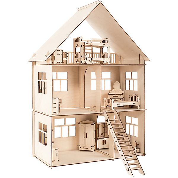 Сборная деревянная модель ХэппиДом "Коттедж с мебелью, Сборная деревянная модель ХэппиДом "Коттедж с мебелью"