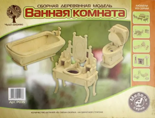 Сборная деревянная модель. Ванная комната, Жёлтый